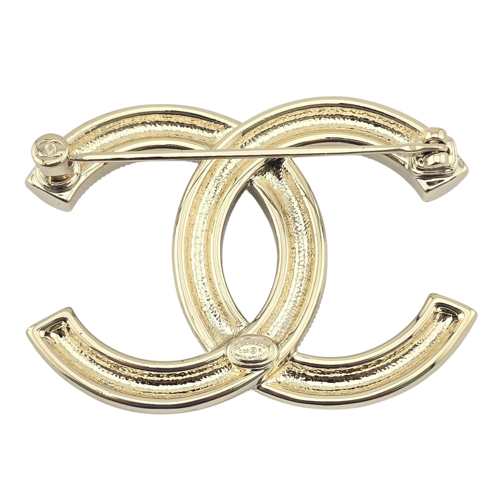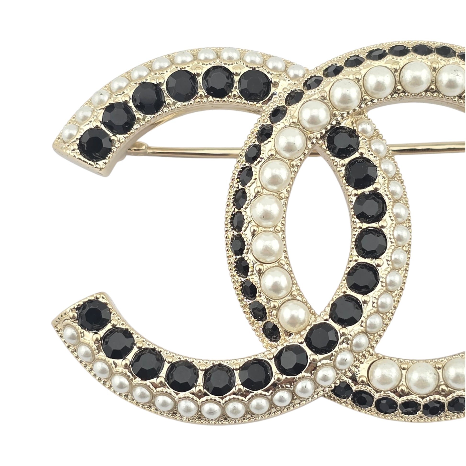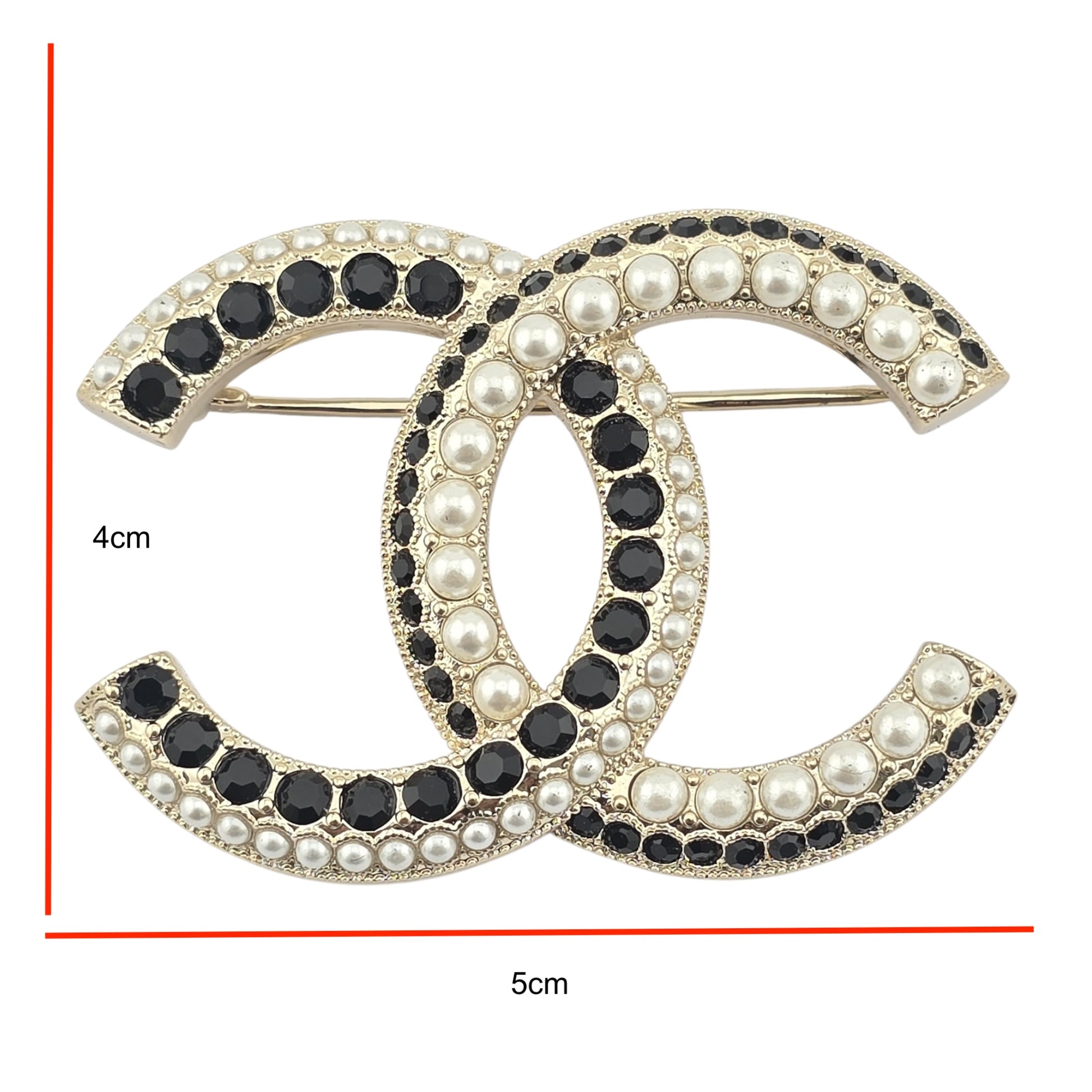 CHANEL BROOCH GOLD BLACK METAL CC C22
