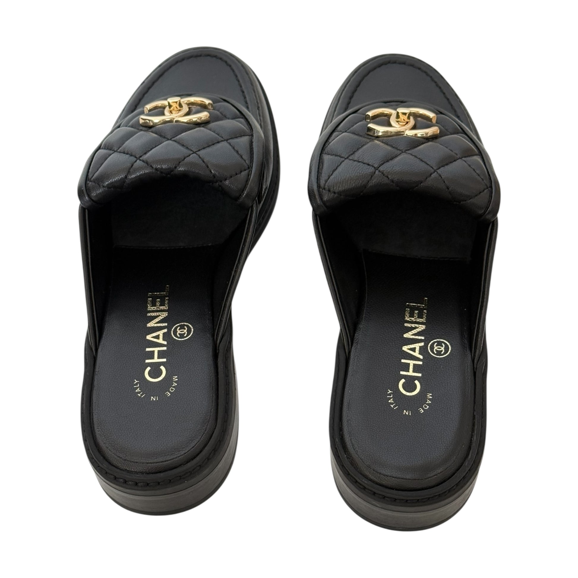 CHANEL CC BLACK TURNLOCK MULES - 39