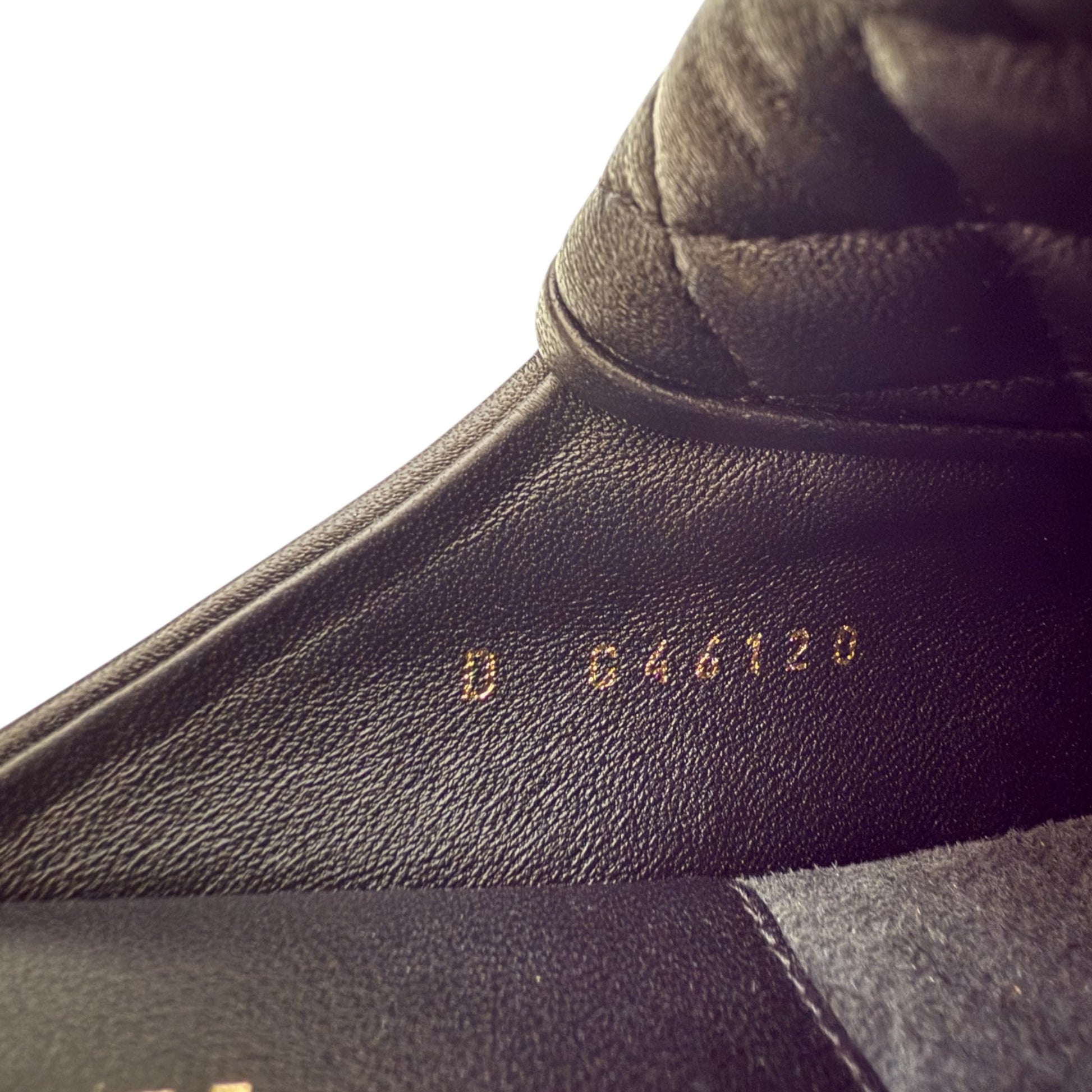 Stunning turnlock mules from the cruise 2025 collection. Iconic black lambskin leather.
