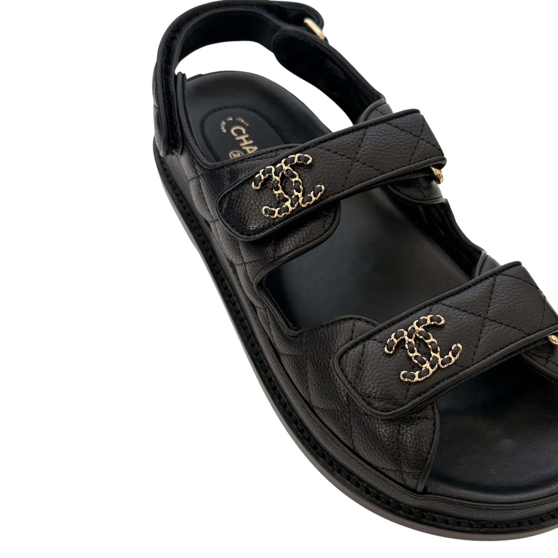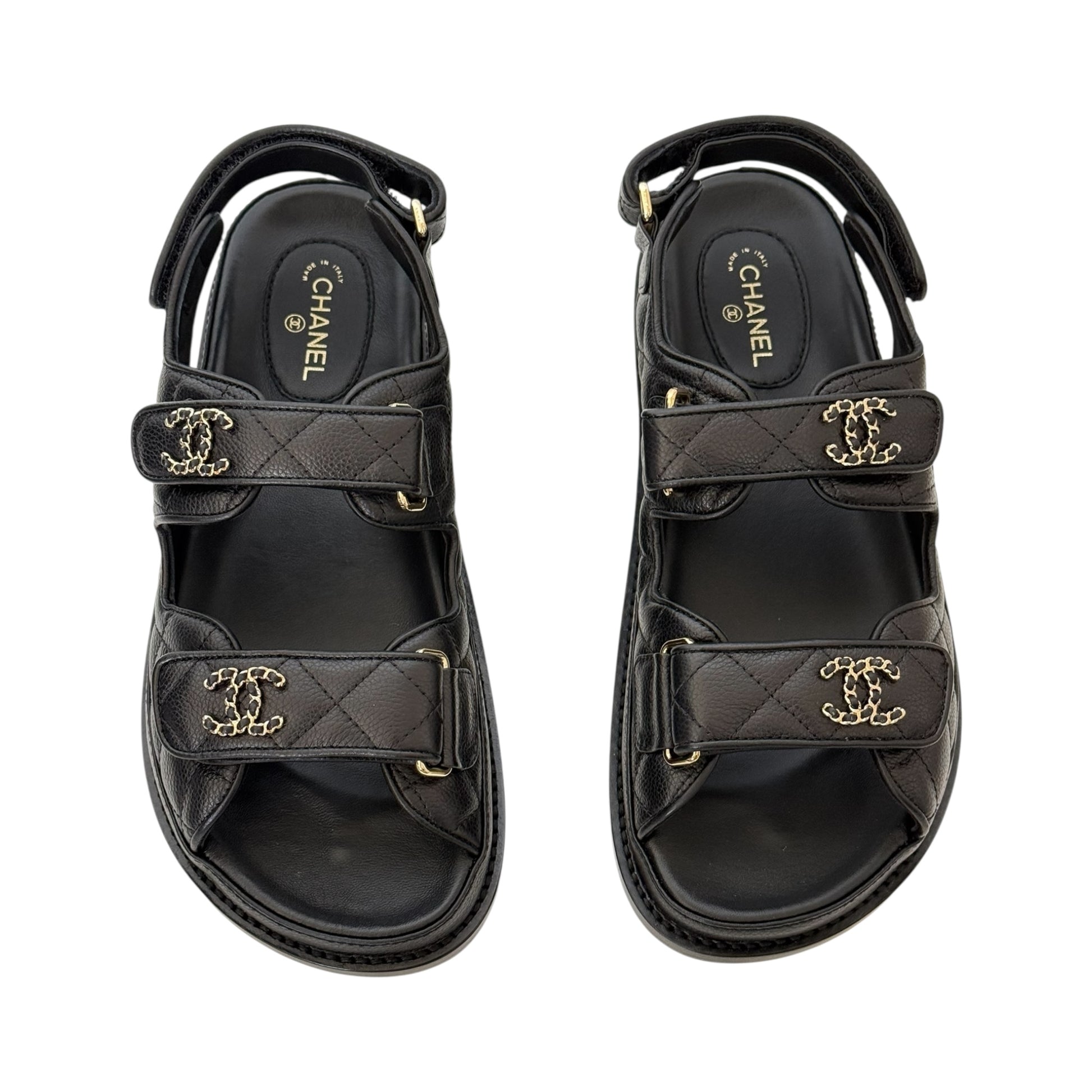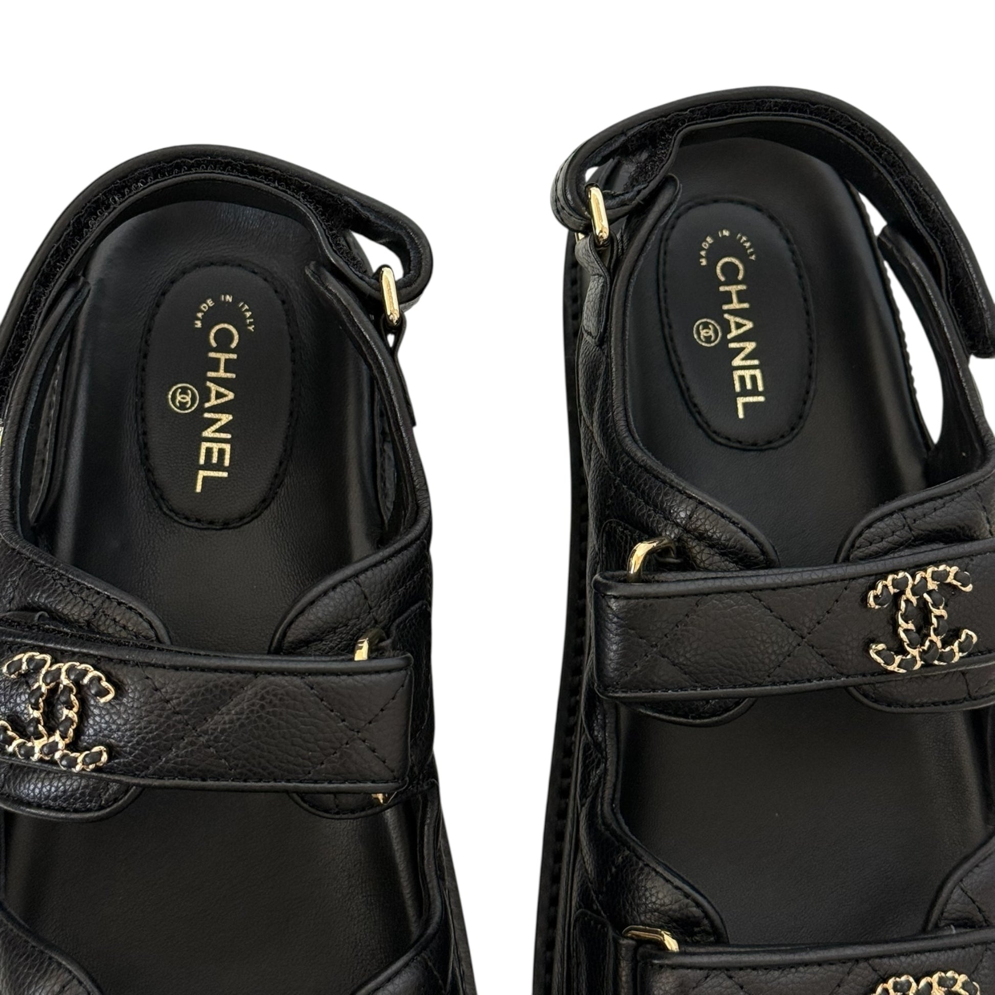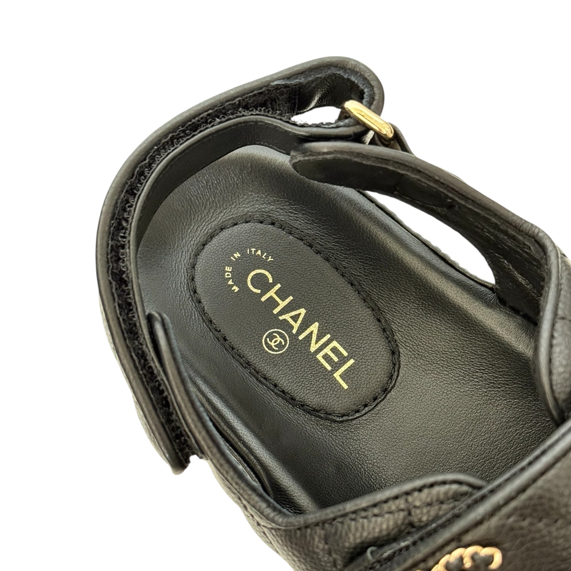 CHANEL CC DAD CAVIAR BLACK DAD SANDALS - 39