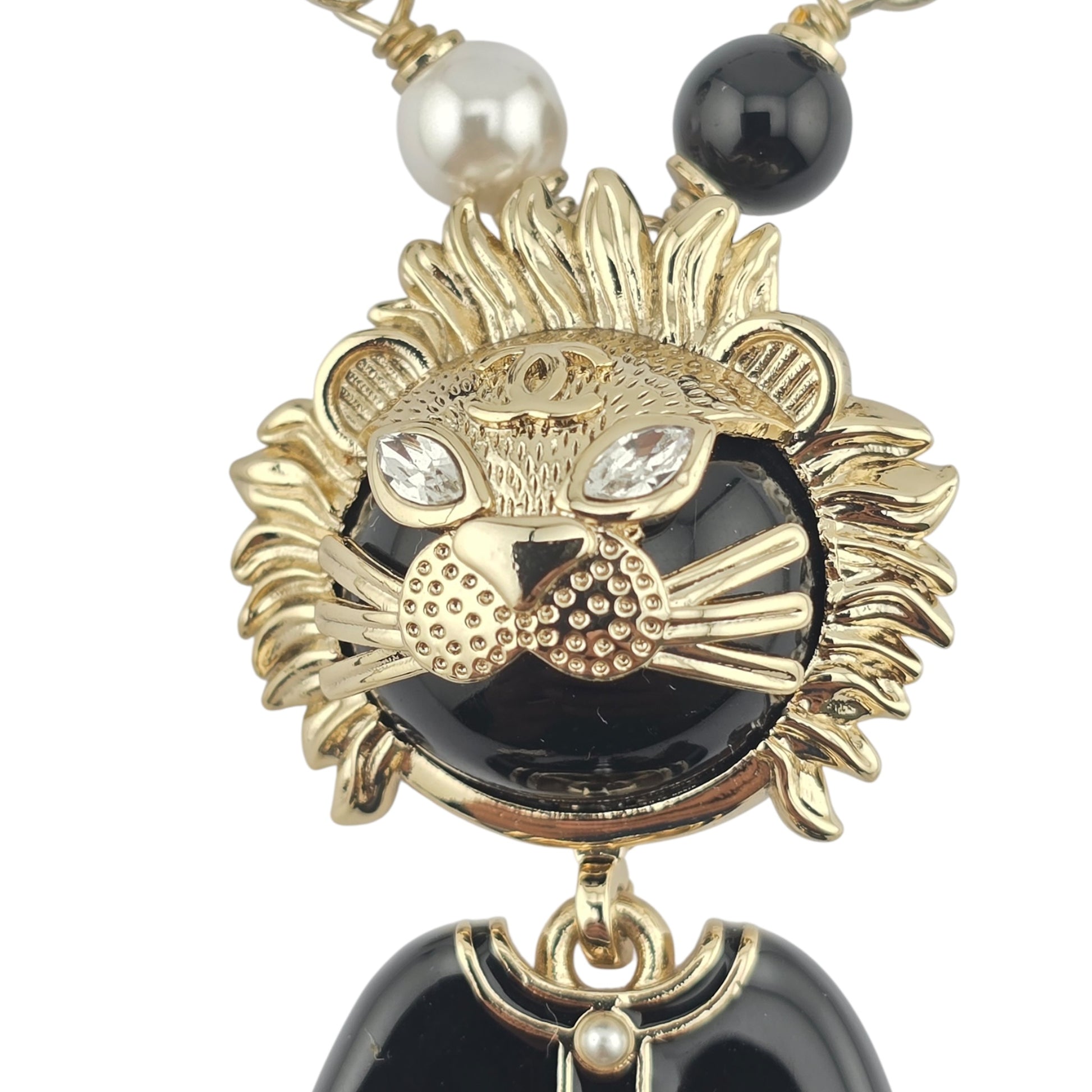 CHANEL ENAMEL CRYSTAL PEARL CC LION NECKLACE BLACK WHITE B22