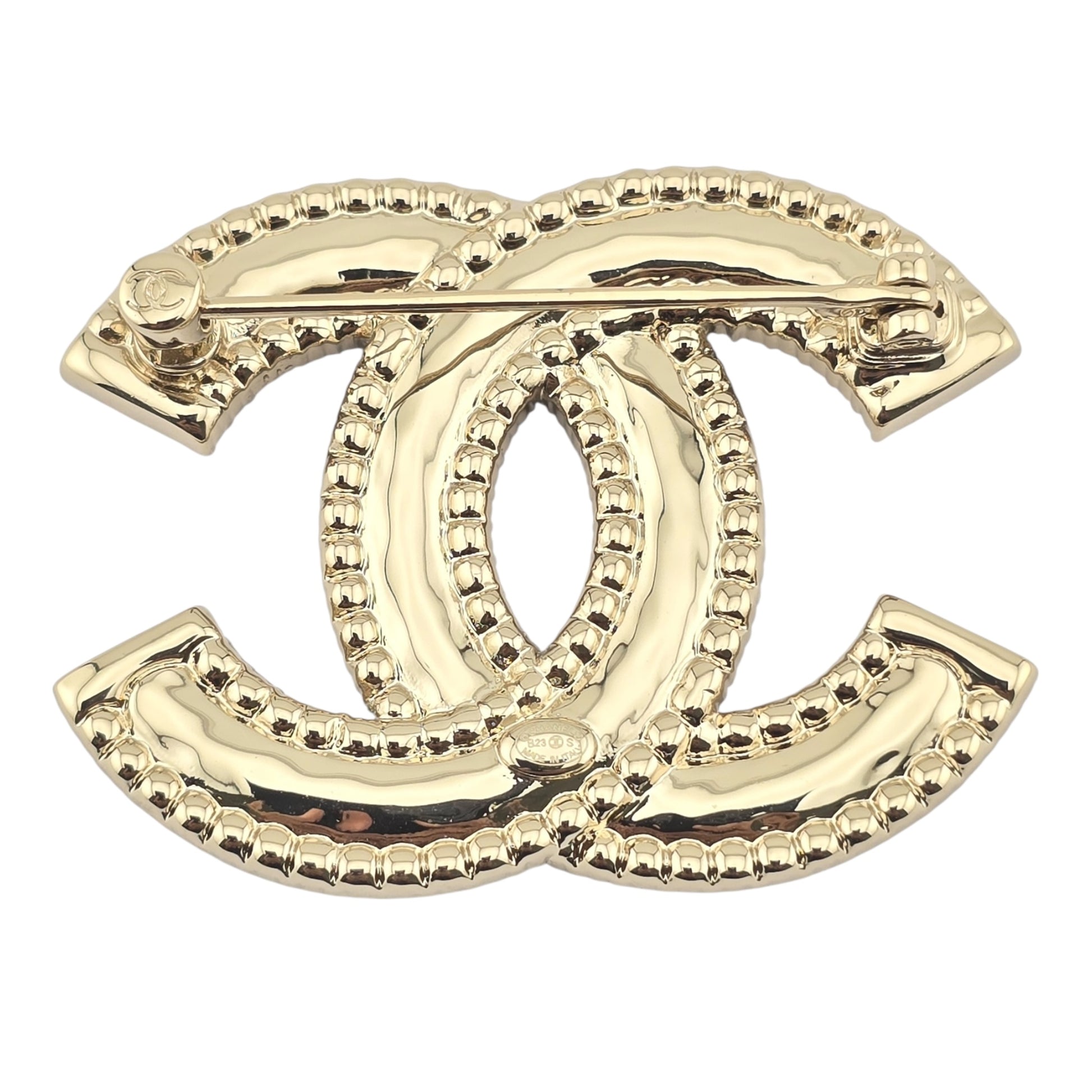 CHANEL GOLD CRYSTAL METAL CC BROOCH B23