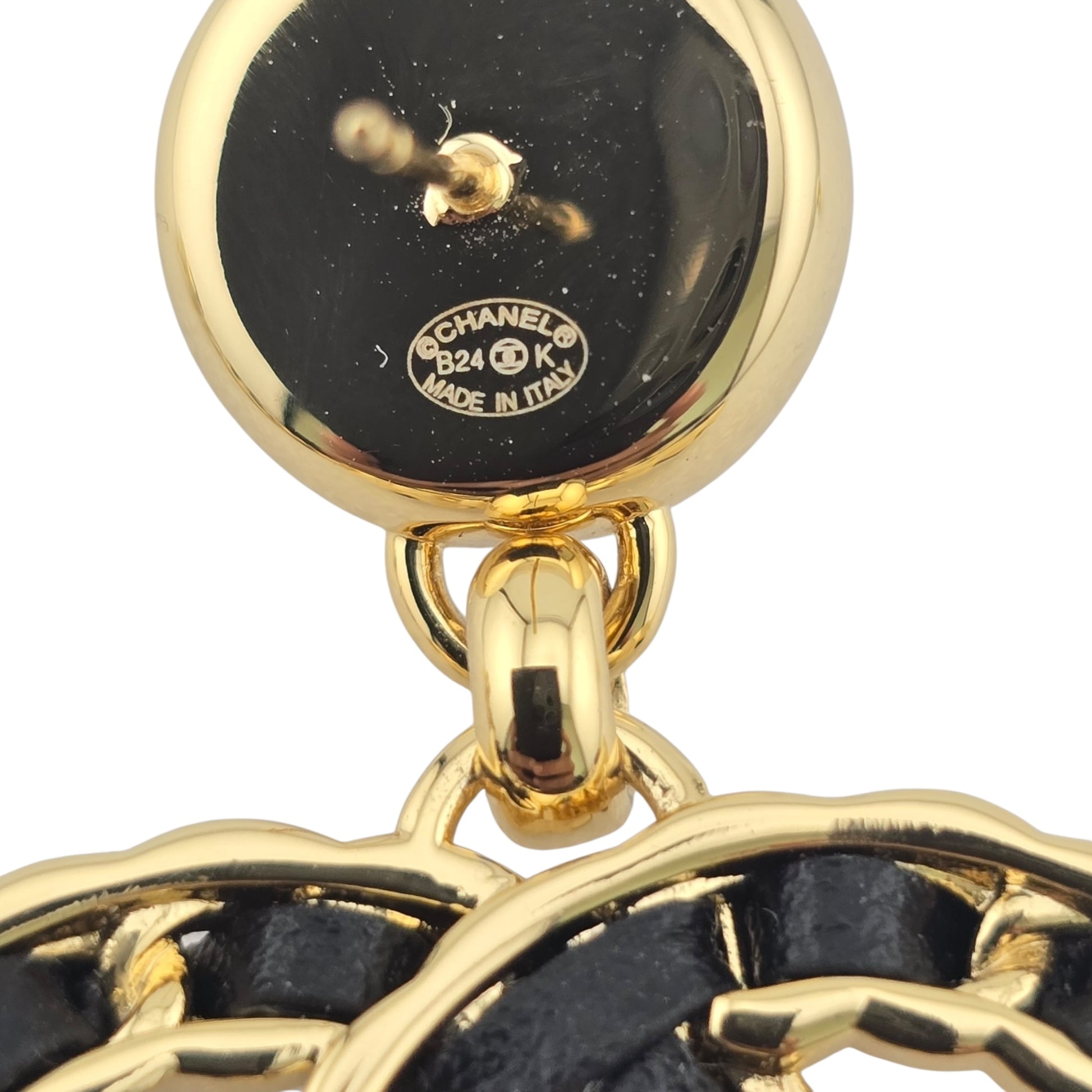 CHANEL LAMBSKIN GOLD METAL CC EARRINGS B24