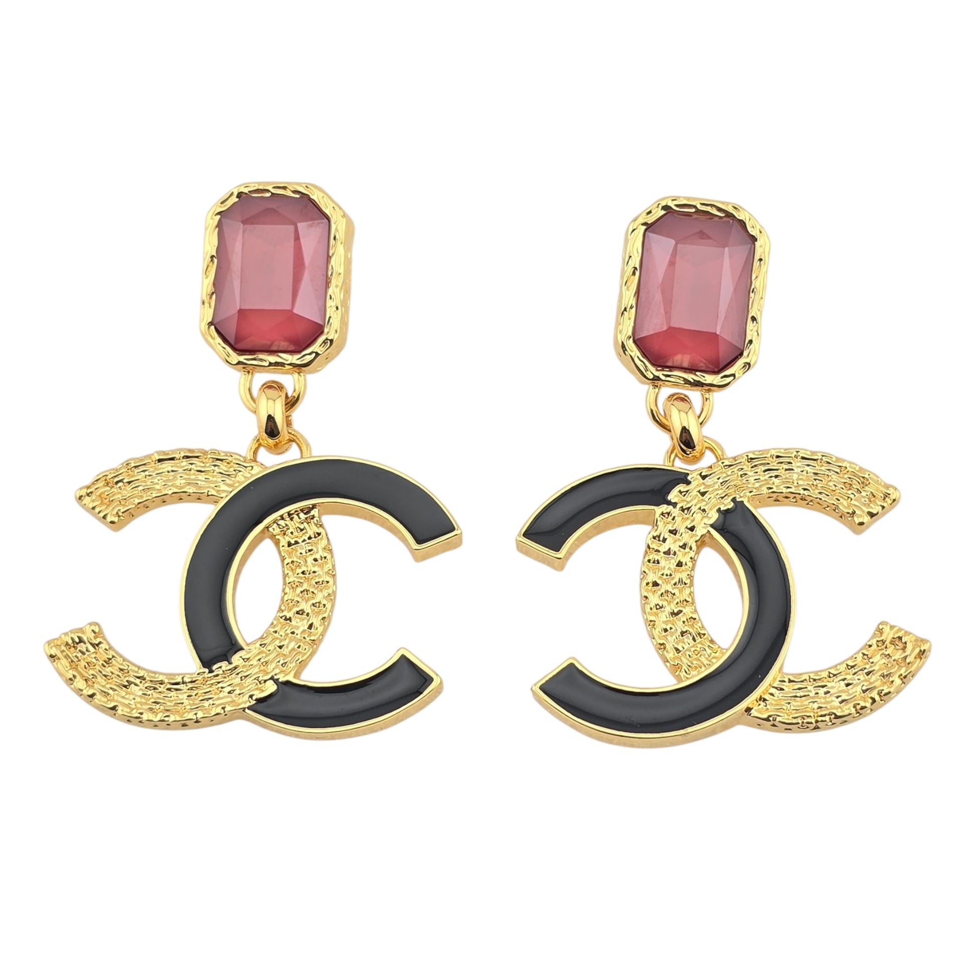 Chanel CC drop earrings with a red crystal stud, 2024 season